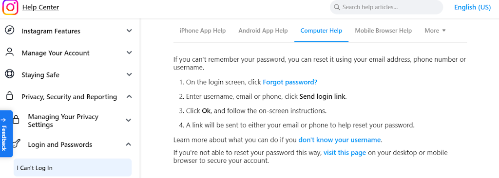 Tap on Forgot password? (or Trouble logging in? on mobile).